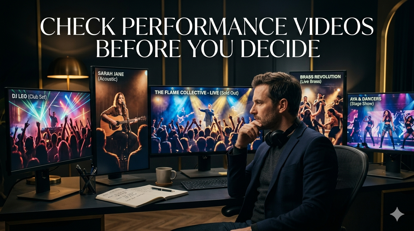 This helps you decide whether you need live music for events, a band, or a solo performer.